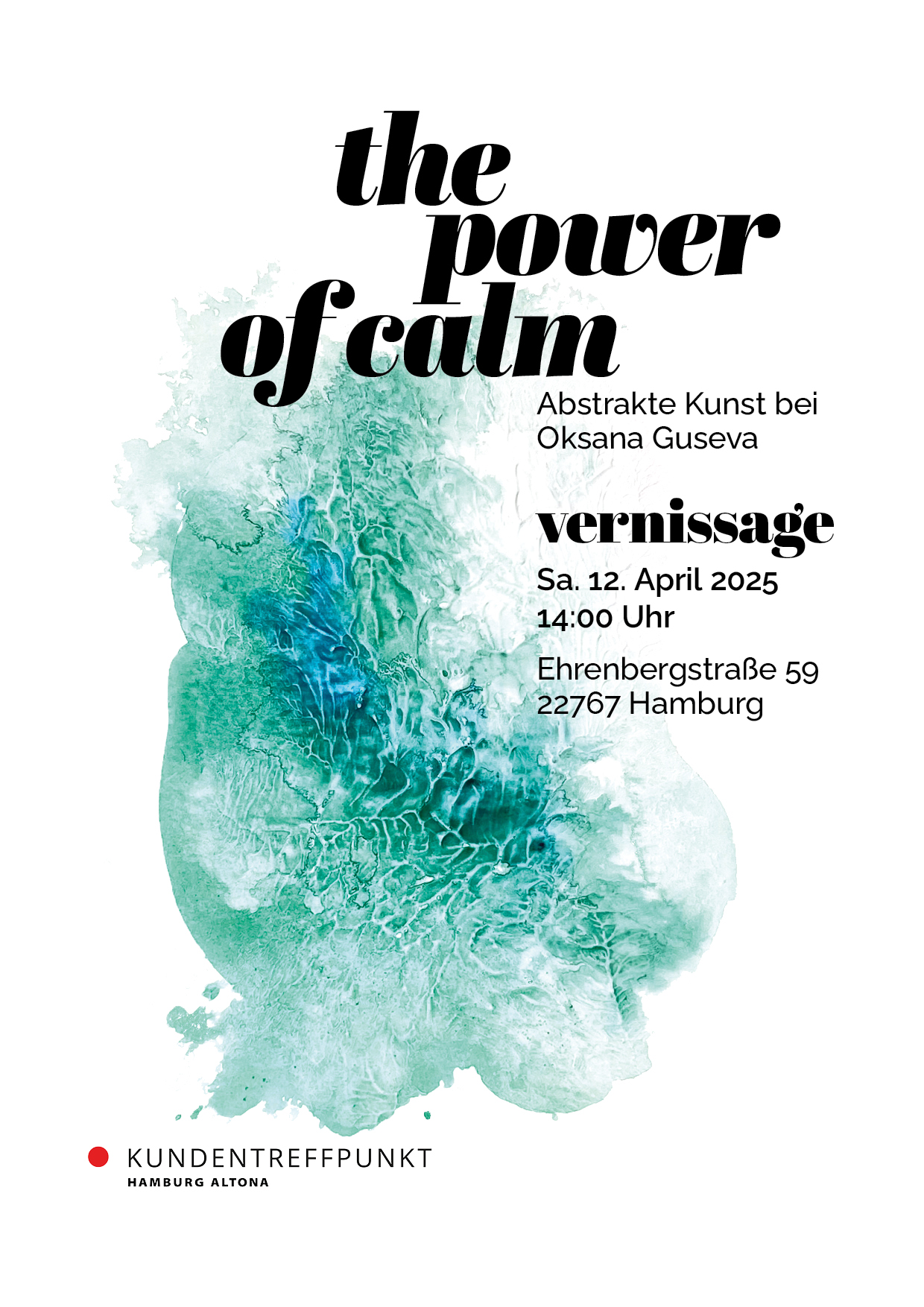 Meine Kunst lädt dich ein, diese besondere Balance zwischen Ruhe und Stärke zu spüren und in eine Atmosphäre der Gelassenheit einzutauchen. Es werden sowohl bekannte als auch neue Werke zu sehen sein.