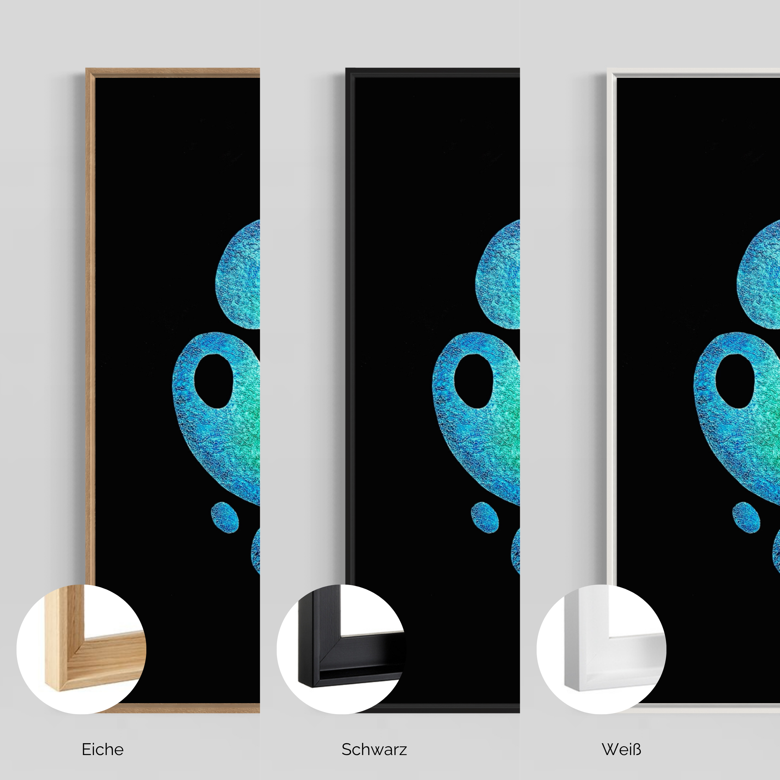 Der Preis ist inkl. Schattenfugenrahmen in Eiche, Schwarz oder Weiß – je nach Wunsch.